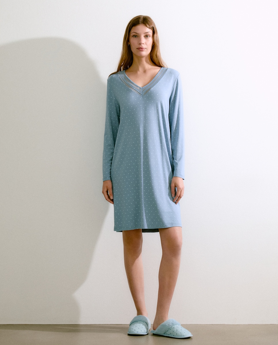 Camisa de dormir com manga comprida às bolinhas