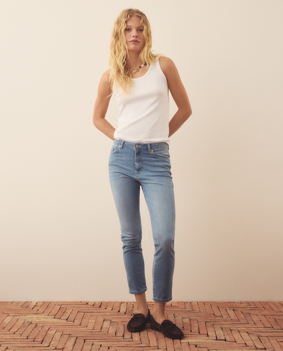 - 48 % Algodão42 % Tencel7 % Elastomultiéster