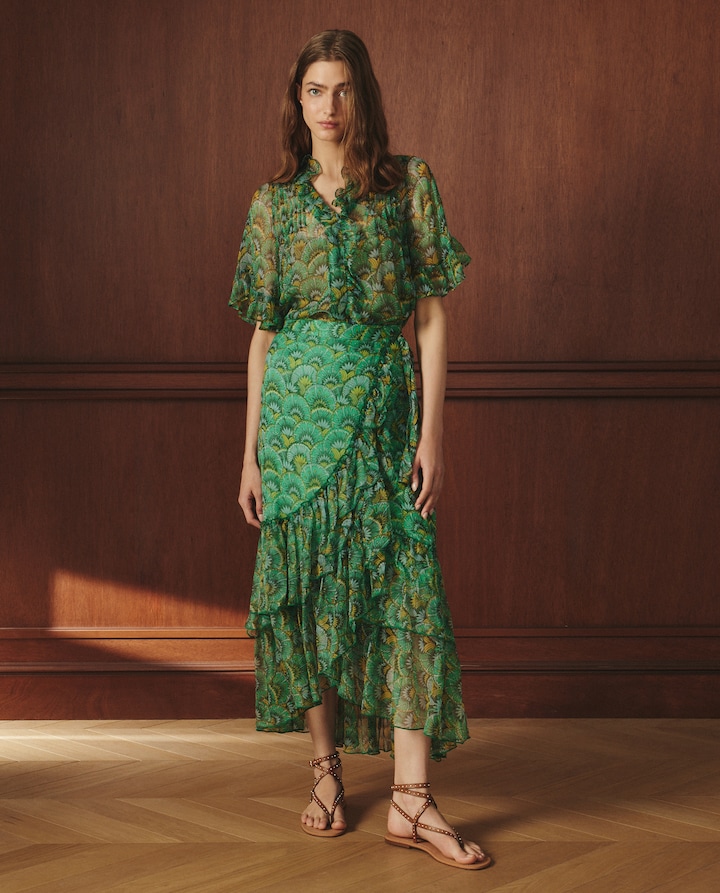 Saia Midi com Estampado Floral