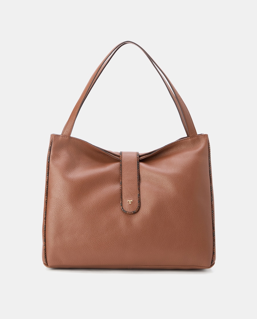 Mala Shopper em Pele com Aba