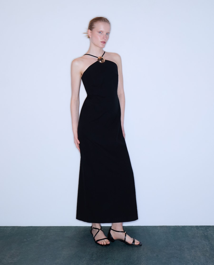 Vestido de Linho com Gola Halter