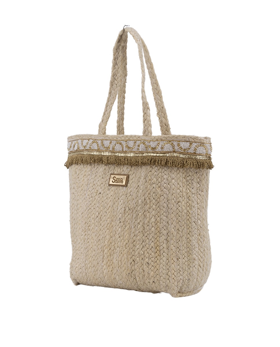 Mala Shopper Maxi de Juta Combinada com Passamanaria Dourada