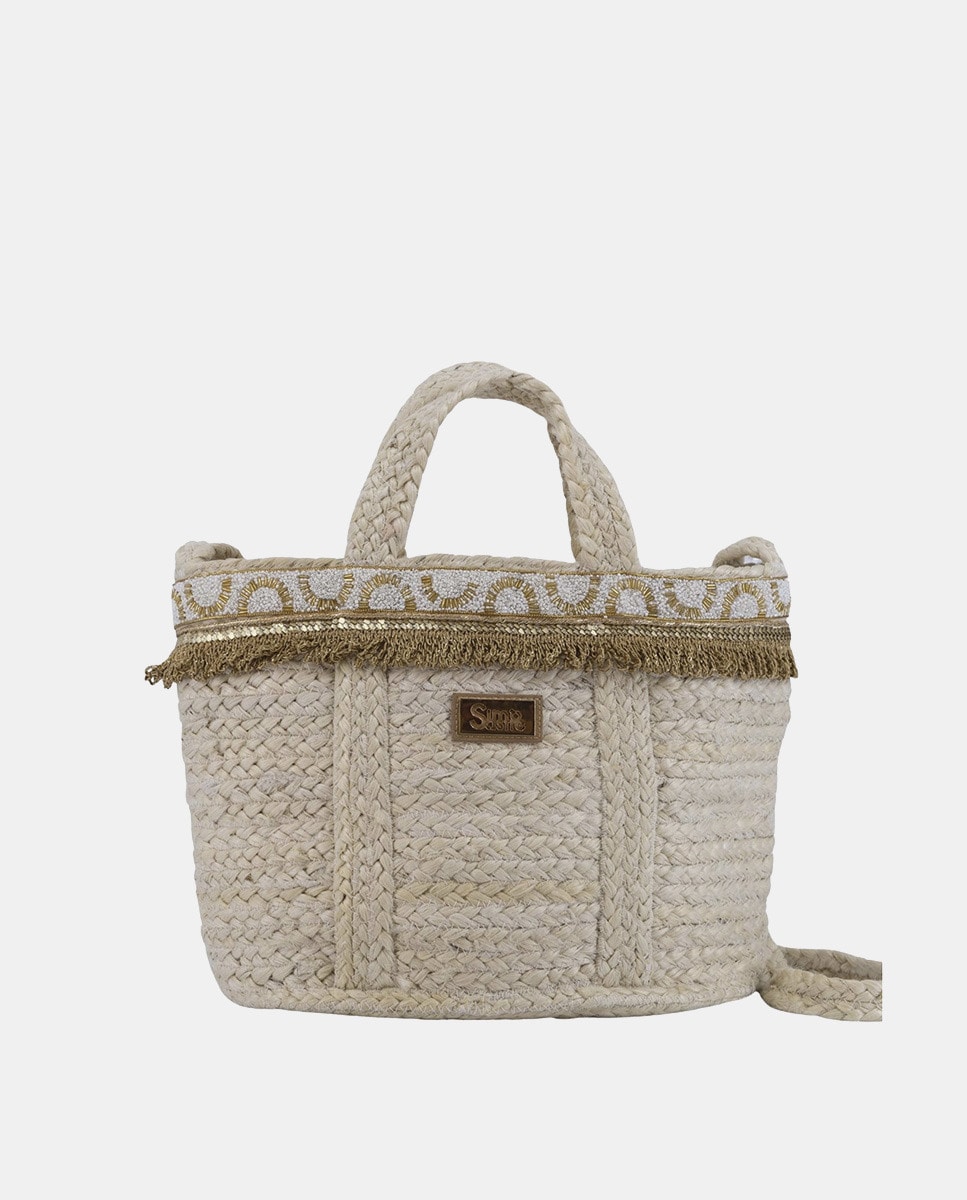 Mala Tipo Tote Grande de Juta Combinada com Passamanaria Dourada