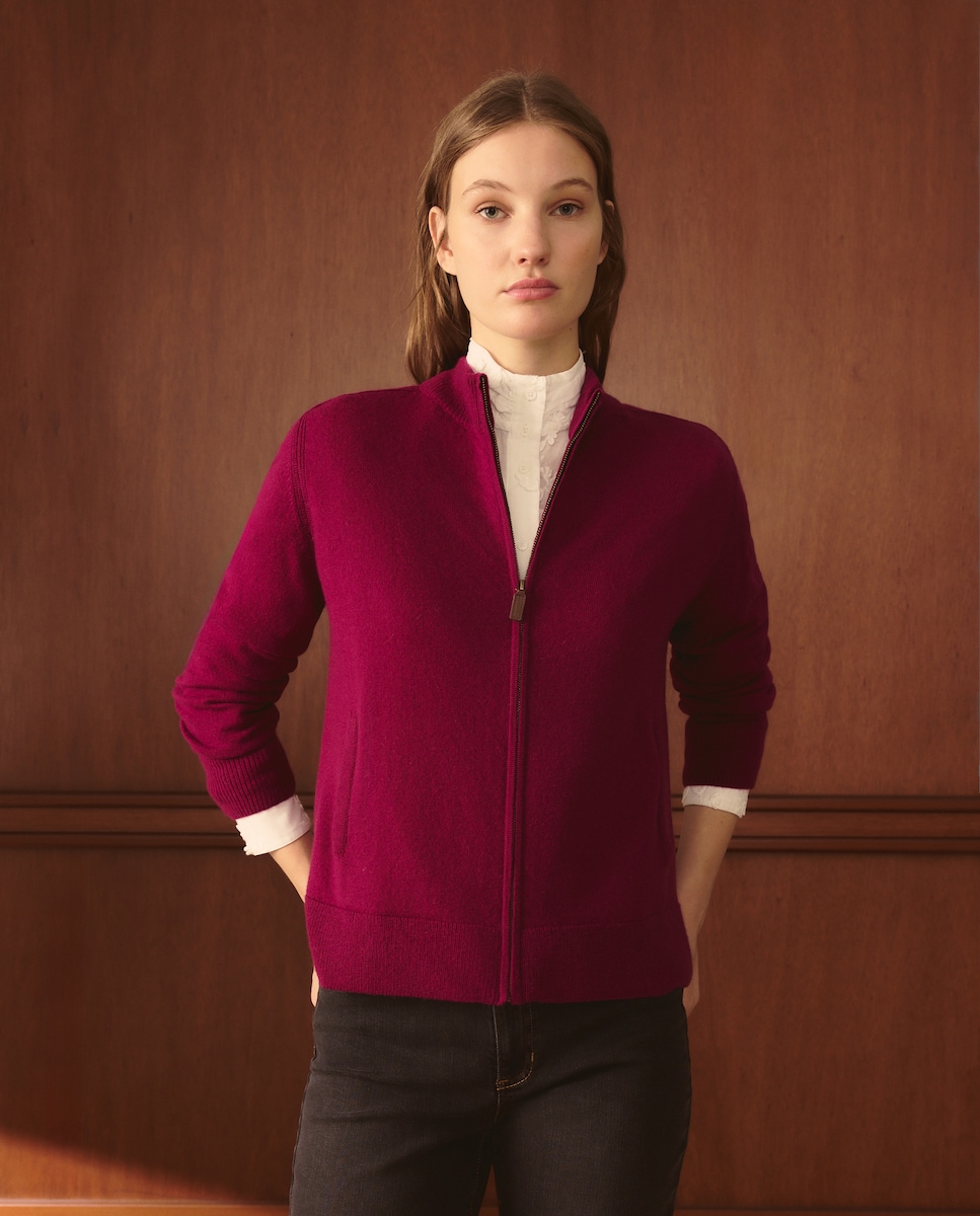 Cardigan em Caxemira Liso de Manga Comprida
