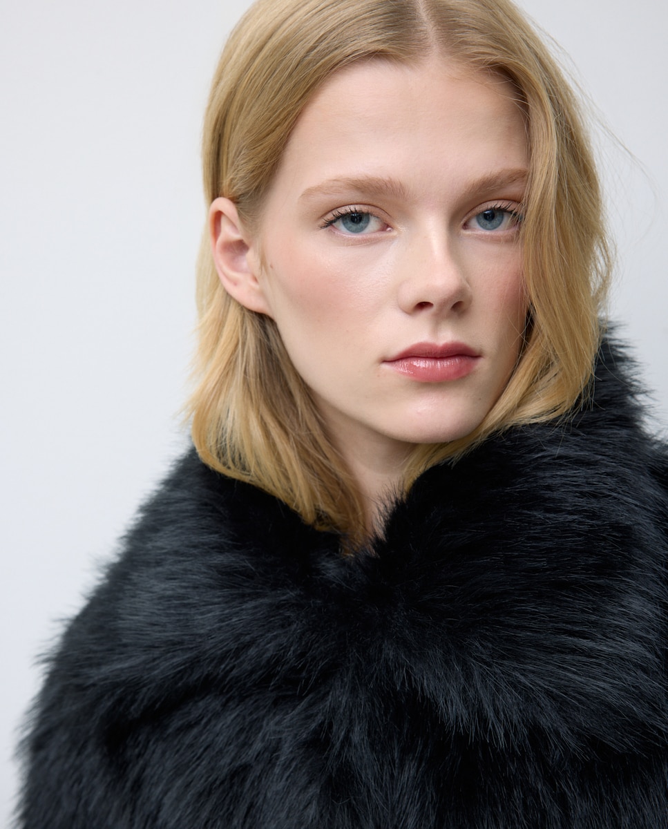Casaco de Pelo com Botões de Pressão