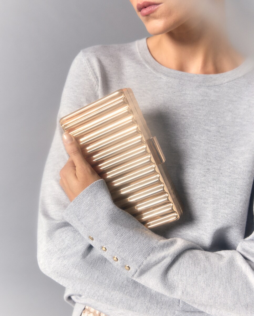 Mala Clutch com Brilho e Fecho de Bambu