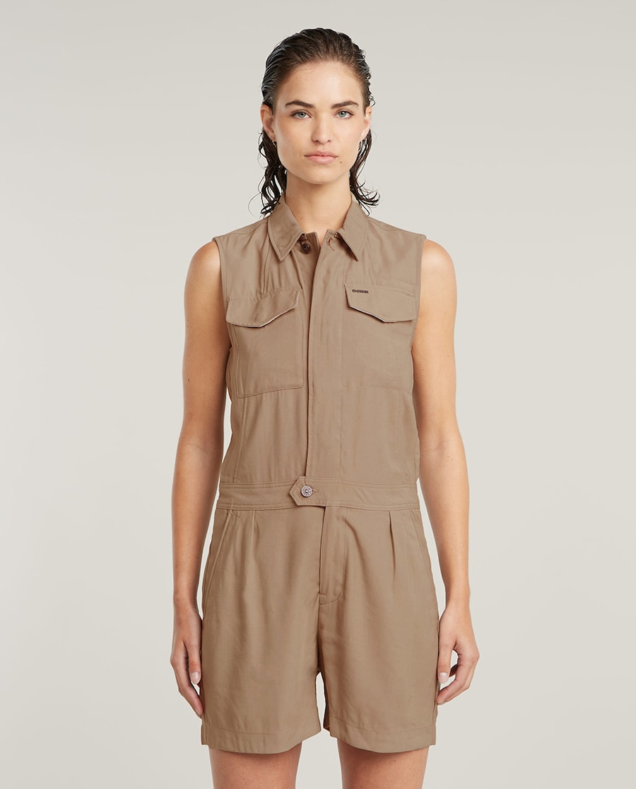 Macacão Curto sem Mangas e de Corte Largo