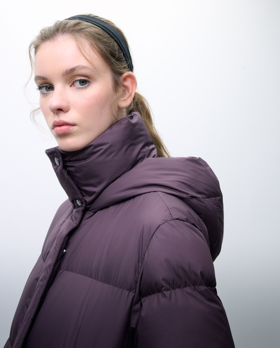 Blusão Acolchoado com Capuz e Gola Dupla