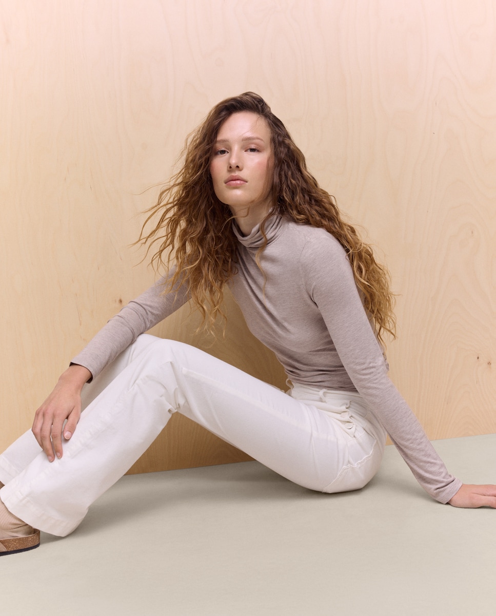 Camisola com manga comprida e gola cisne
