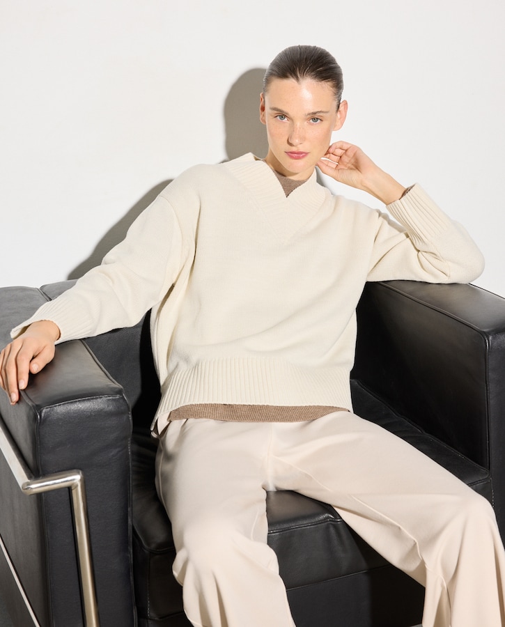 Camisola de Malha Grossa com Decote em Bico Fechado