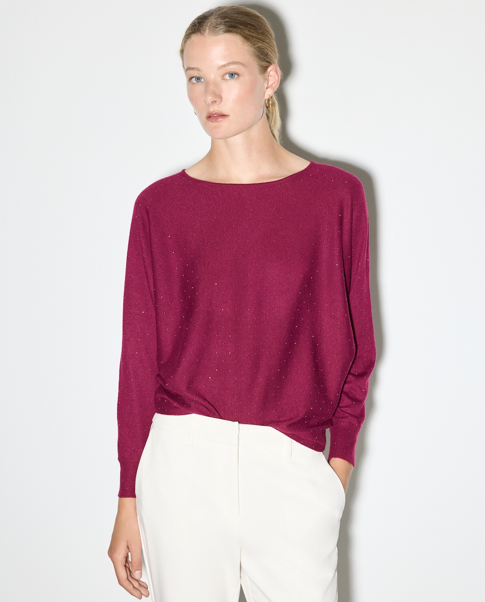 Camisola de Malha com Decote à Barco e Strass