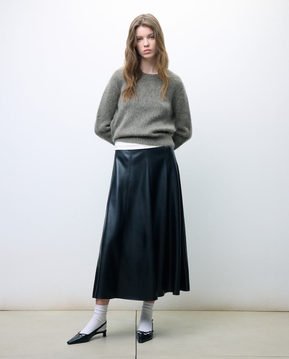 Saia midi com efeito de pele