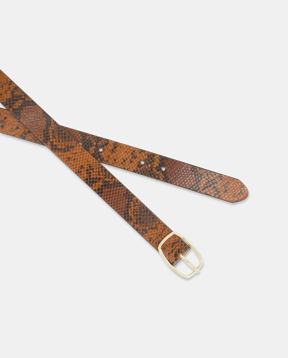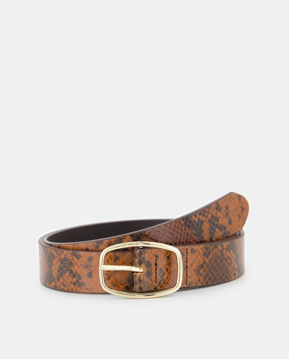 Cinto em Pele com Animal Print de Serpente