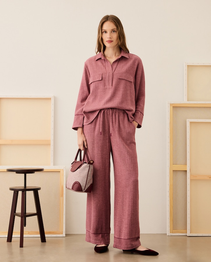 Calças de Padrão Espinha de Peixe
