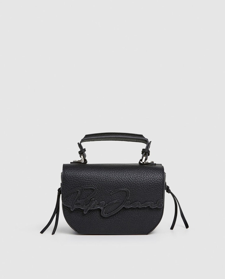 Mala a Tiracolo Amber Script com Aba, Logótipo Tipo Assinatura e Detalhe de Nós Laterais