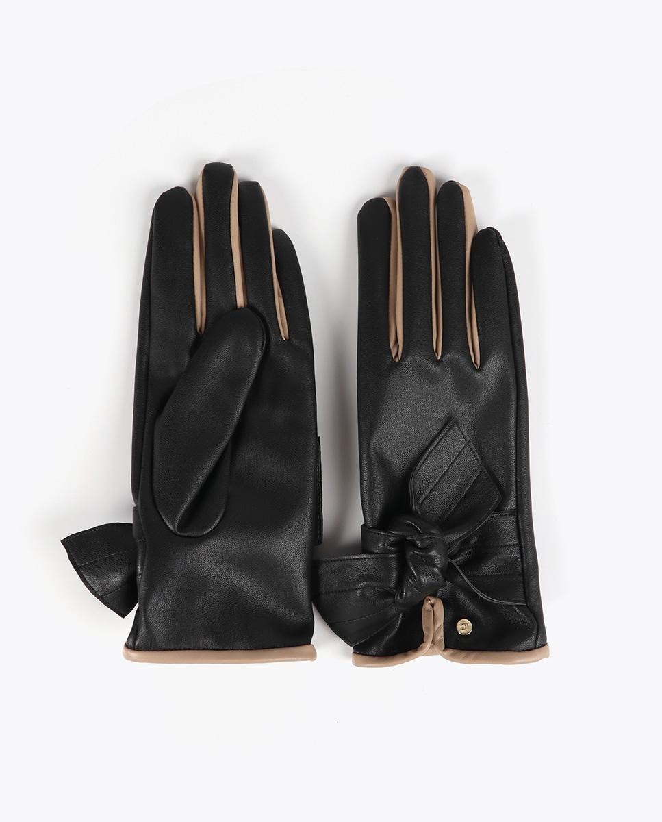 Luvas com Efeito de Pele e Laço - Vermelho/Rosa