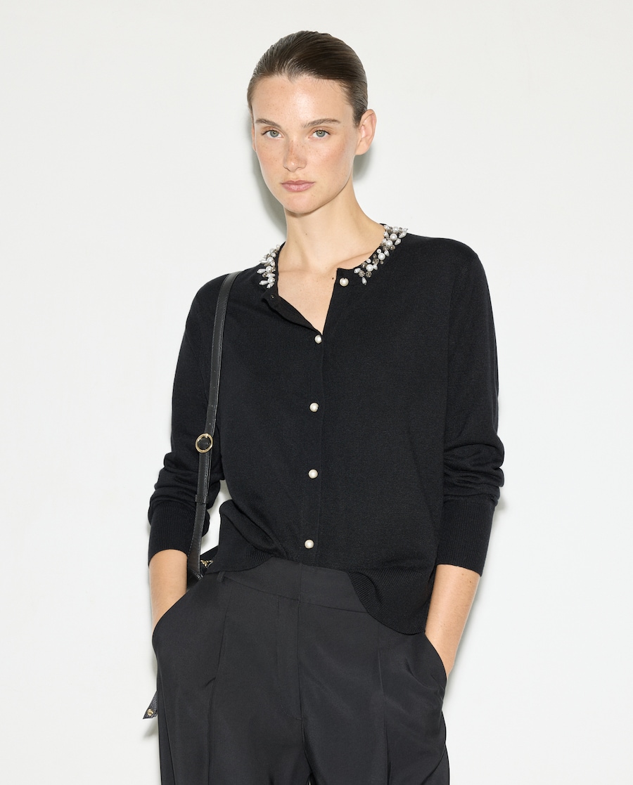 Casaco com Decote de Pedraria