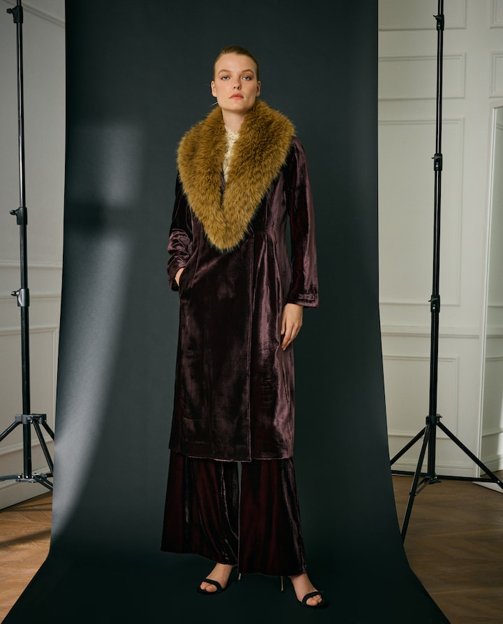 Sobretudo Curto Cintado de Veludo