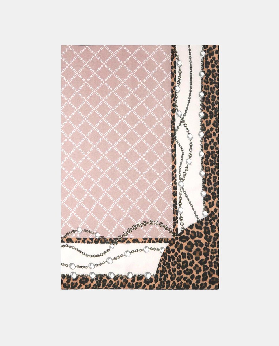 Écharpe com Micro Logótipo em Losango com Detalhe de Pérolas e Animal Print