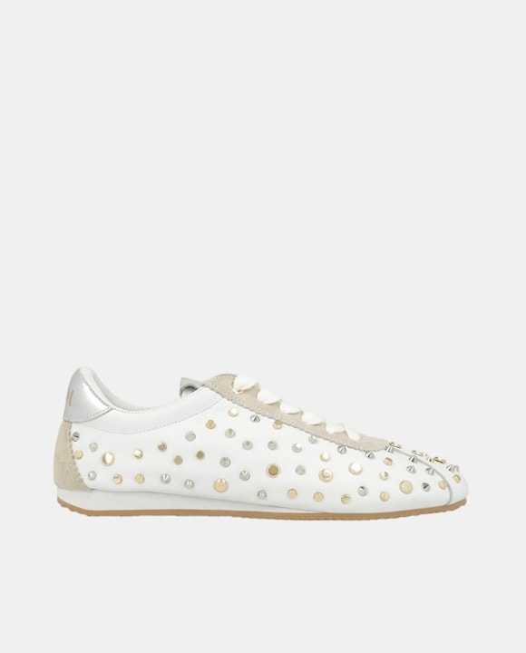 Sapatilhas em Pele com Tachas Metálicas - Branco
