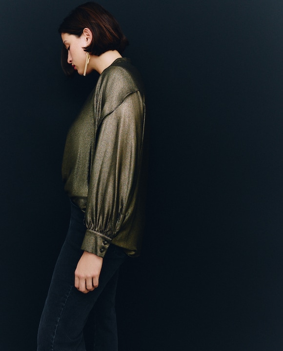 Blusa de Efeito Laminado com Manga Comprida