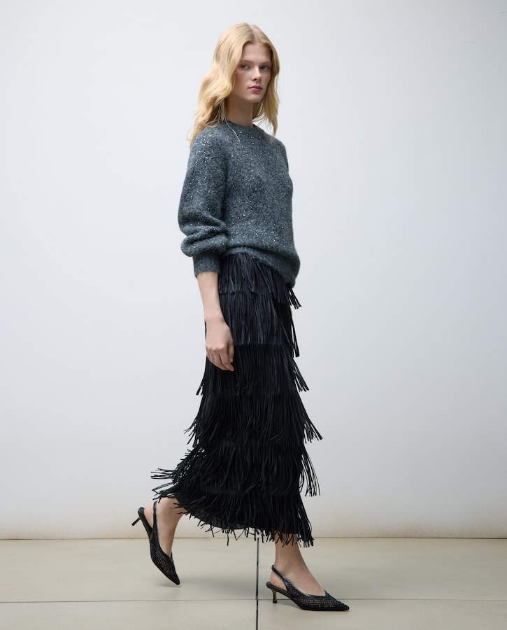Saia midi com franjas