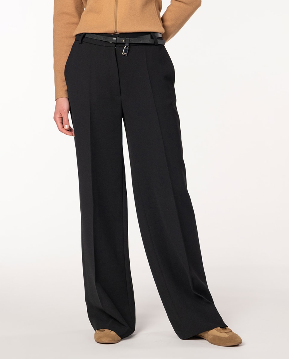 Calças Largas em Crepe Duplo
