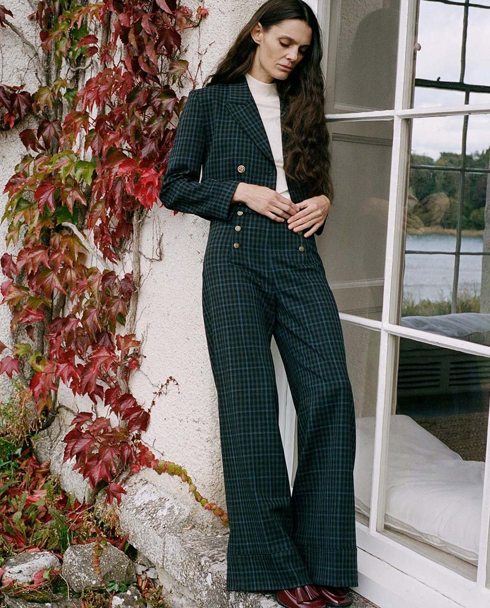 Calças aos Quadrados com Botões