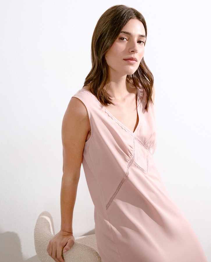 Camisa de Dormir com Detalhe Floral e sem Mangas