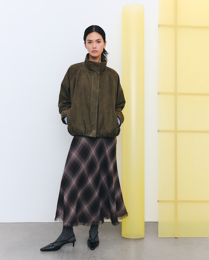 Saia midi aos quadrados