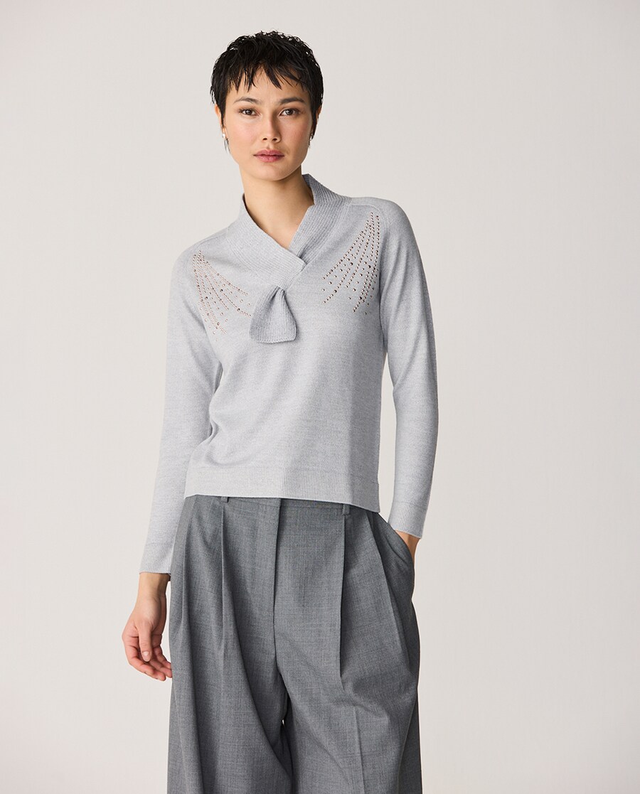 Camisola de Malha com Gola de Gravata e Hotfix