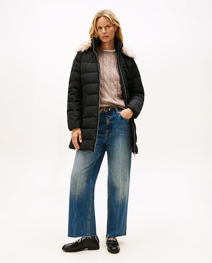 Blusão Acolchoado Comprido com Capuz e Pelo
