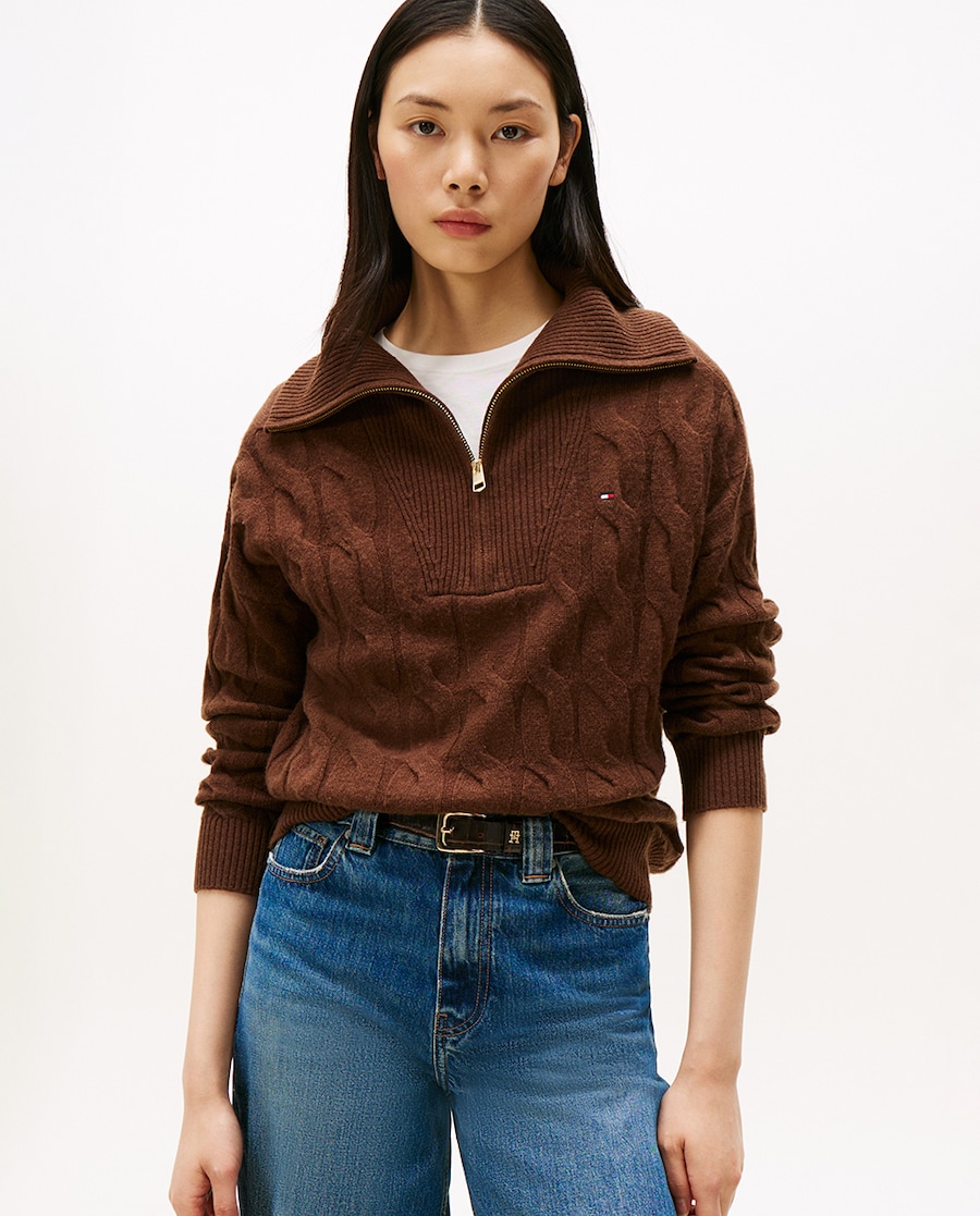 Camisola de Malha do Cabo com Meio Fecho de Correr