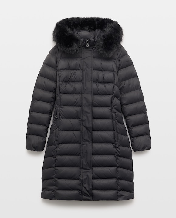Blusão Acolchoado Comprido com Cinto e Pelo Desmontável