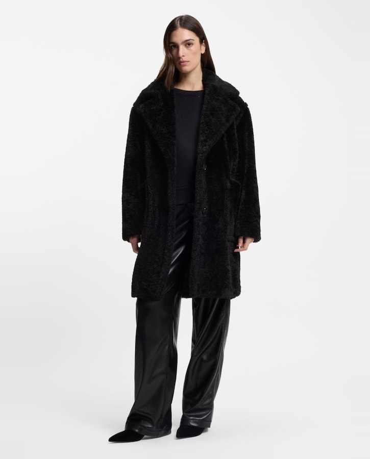 Sobretudo Comprido de Polipele em Poliéster com Forro Jacquard