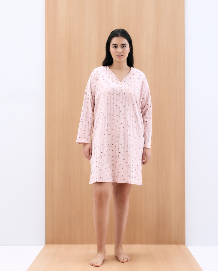 Camisa de Dormir de Manga Comprida com Estampado e Detalhe na Gola