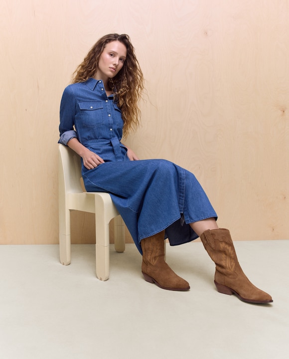 Vestido camiseiro de ganga