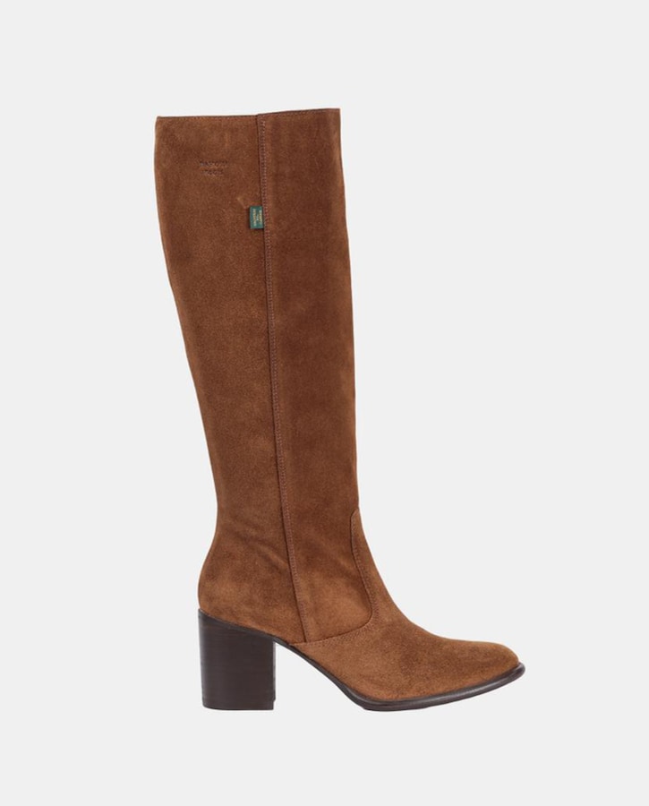 Botas Altas Lisas em Pele com Tacão e Fecho de Correr