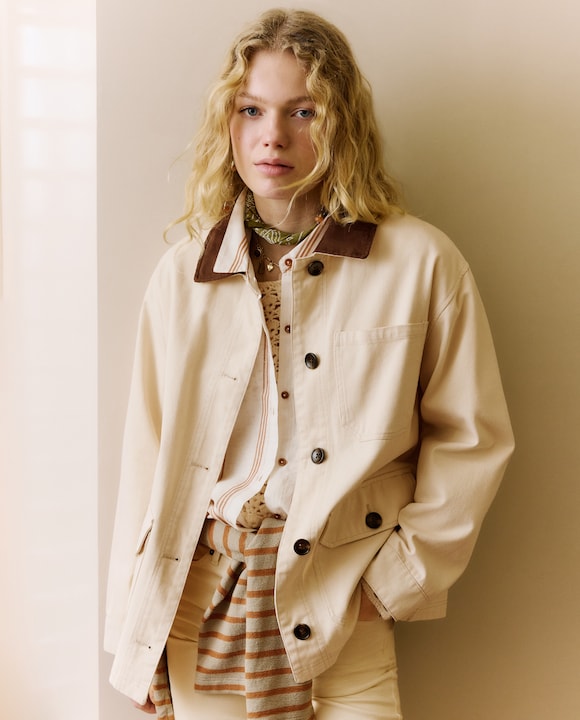 Parka de Sarja com Gola em Contraste