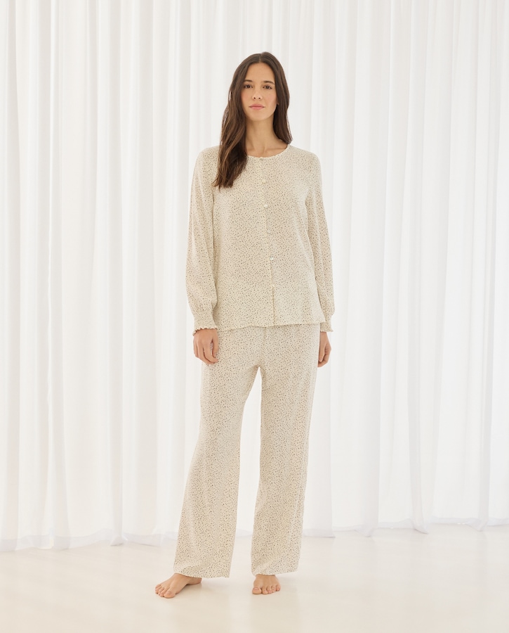 Pijama com Estampado Floral e Mangas em Balão