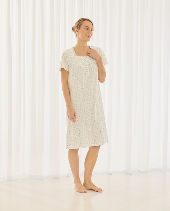 Camisa de Dormir com Decote em Bico e Detalhes Florais