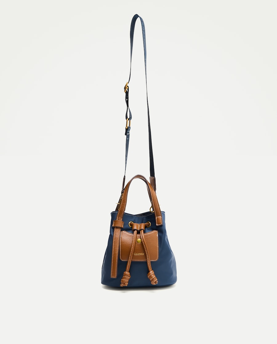 Mala Tipo Bucket Média com Efeito de Ráfia