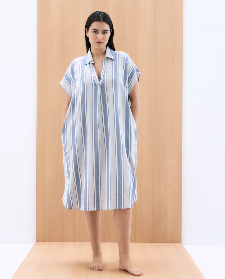 Vestido às Riscas com Manga Curta