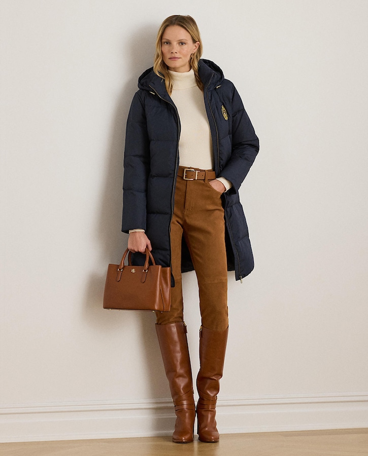 Blusão acolchoado comprido de mulher com capuz