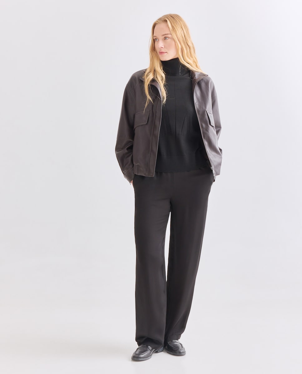 Calças em Cetim com Detalhe Lateral