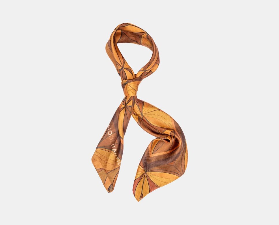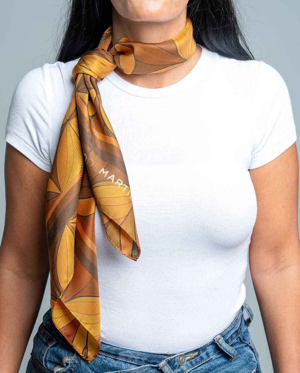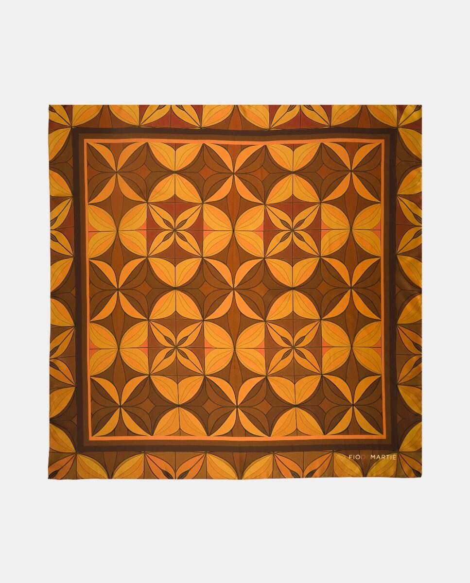 Lenço de Seda Grande com Estampado Geométrico - Bege/Castanho