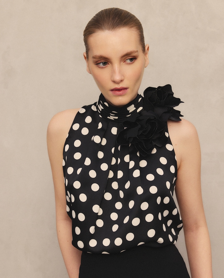Top Halter com Flor no Ombro