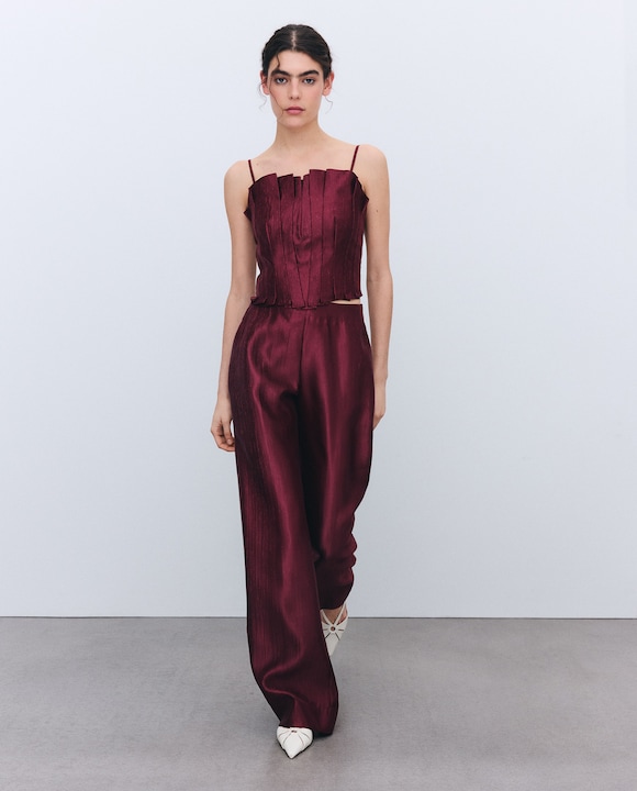 Calças Lisas com Efeito Enrugado