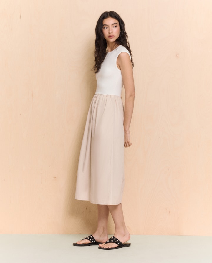 Vestido Midi Combinado sem Mangas