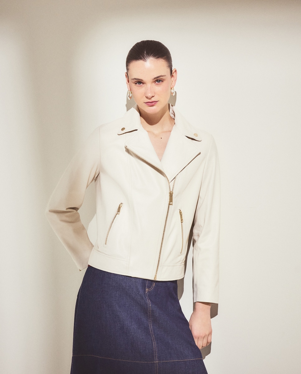 Blusão Biker com Fecho de Correr Cruzado